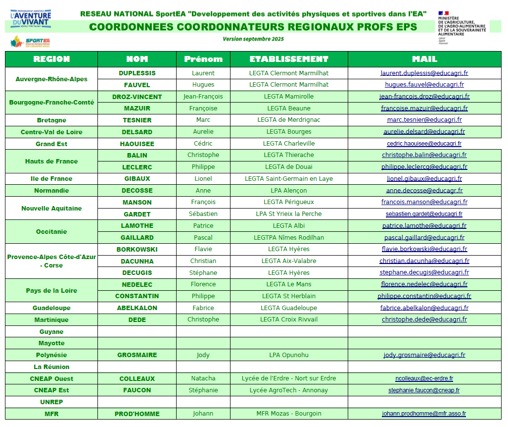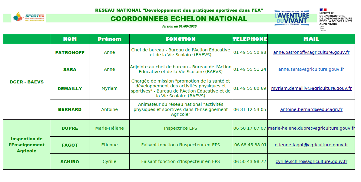 Répertoire de l'échelon national, des Coordonnateurs EPS et Correspondants "Sports" DRAAF-SRFD